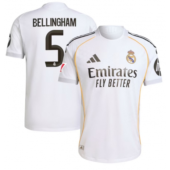 - Men Real Madrid 2026 Soccer Jerseys White Long #5 BELLINGHAM