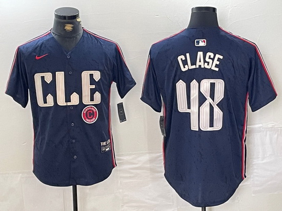 - Men Cleveland Guardians Team Big Logo Navy 2024 City Connect Stitched Baseball Jersey III