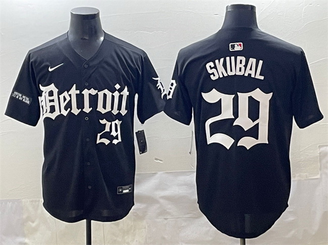 - Men Detroit Tigers 29 Tarik Skubal Orange With Patch Cool Base Stitched Baseball Jersey