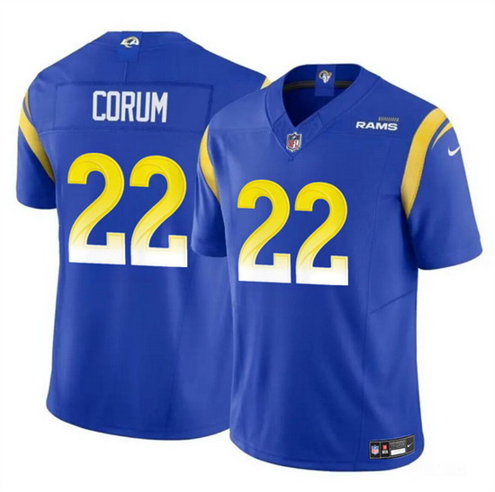 - Men Los Angeles Rams 28 Marshall Faulk Blue Yellow Vapor Limited Jersey