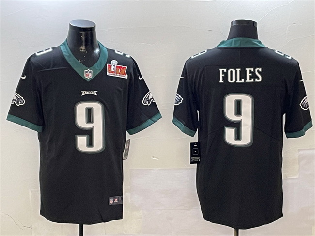 Men Philadelphia Eagles 9 Nick Foles Black 2025 Super Bowl LIX Patch Vapor Untouchable Limited Stitched Football Jersey