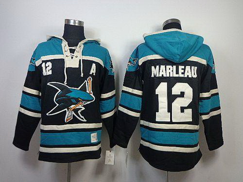 - San Jose Sharks 12 Patrick Marleaui Black Women Old Time Heidi Hoodie NHL Hoodie