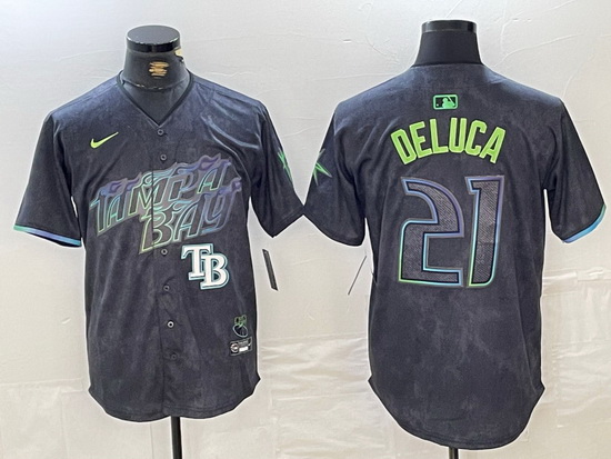 - Men Tampa Bay Rays 8 Brandon Lowe Charcoal 2024 City Connect Limited Stitched jerseys 1