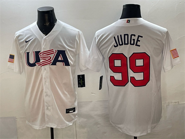 - Men USA Baseball 99 Aaron Judge 2023 Navy World Baseball Classic Stitched Jersey