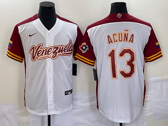 - Men's Venezuela Baseball #13 Ronald Acuna Jr 2023 White Red World Classic Stitched Jerseys