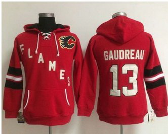 - Calgary Flames 13 Johnny Gaudreau Red Women Old Time Heidi NHL Hoodie