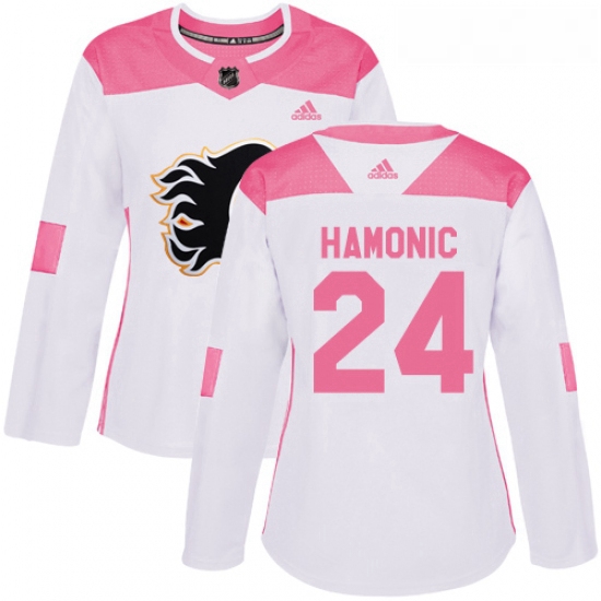 - Womens Adidas Calgary Flames 61 Brett Kulak Authentic WhitePink Fashion NHL Jersey