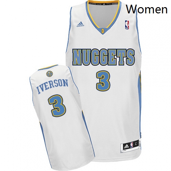 - Womens Adidas Denver Nuggets 3 Allen Iverson Authentic White Home NBA Jersey