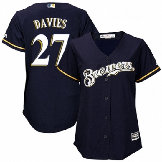- Womens Majestic Milwaukee Brewers 27 Zach Davies Authentic Grey Road Cool Base MLB Jersey