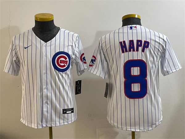 - Youth Chicago Cubs 8 Ian Happ White 2025 Tokyo Series Limited Stitched Baseball Jersey
